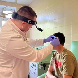 Если острый средний отит с резкими болями, с повышением температуры трудно не заметить, то средний экссудативный часто остаётся без должного внимания. Чувства заложенности уха, периодического или постепенного увеличения приглушенности звуков, переливания жидкости, бульканья, щелчков при глотании и движении головы далеко не всегда и не всех приведут на консультацию к оториноларингологу. Следствием экссудативного среднего отита у ребёнка могут стать нарушения слухо-речевого и интеллектуального развития. Как минимум, однократно экссудативным средним отитом болеют более 90% детей до двухлетнего возраста. Алексей Андреевич отмечает: «Механическое нарушение проходимости слуховой трубы за счет аденоидных вегетаций, гиперплазии трубных, небных миндалин, новообразований носоглотки или рубцовых изменений нередко является первопричиной развития экссудативного среднего отита. В ЛОР-отделении ТОДКБ чаще всего встречаются пациенты именно с сопутствующими заболеваниями, в частности, с гипертрофией аденоидов и нёбных миндалин. Статистика не меняется уже несколько лет: на 7 прооперированных детей, у двоих из них – экссудативный средний отит».