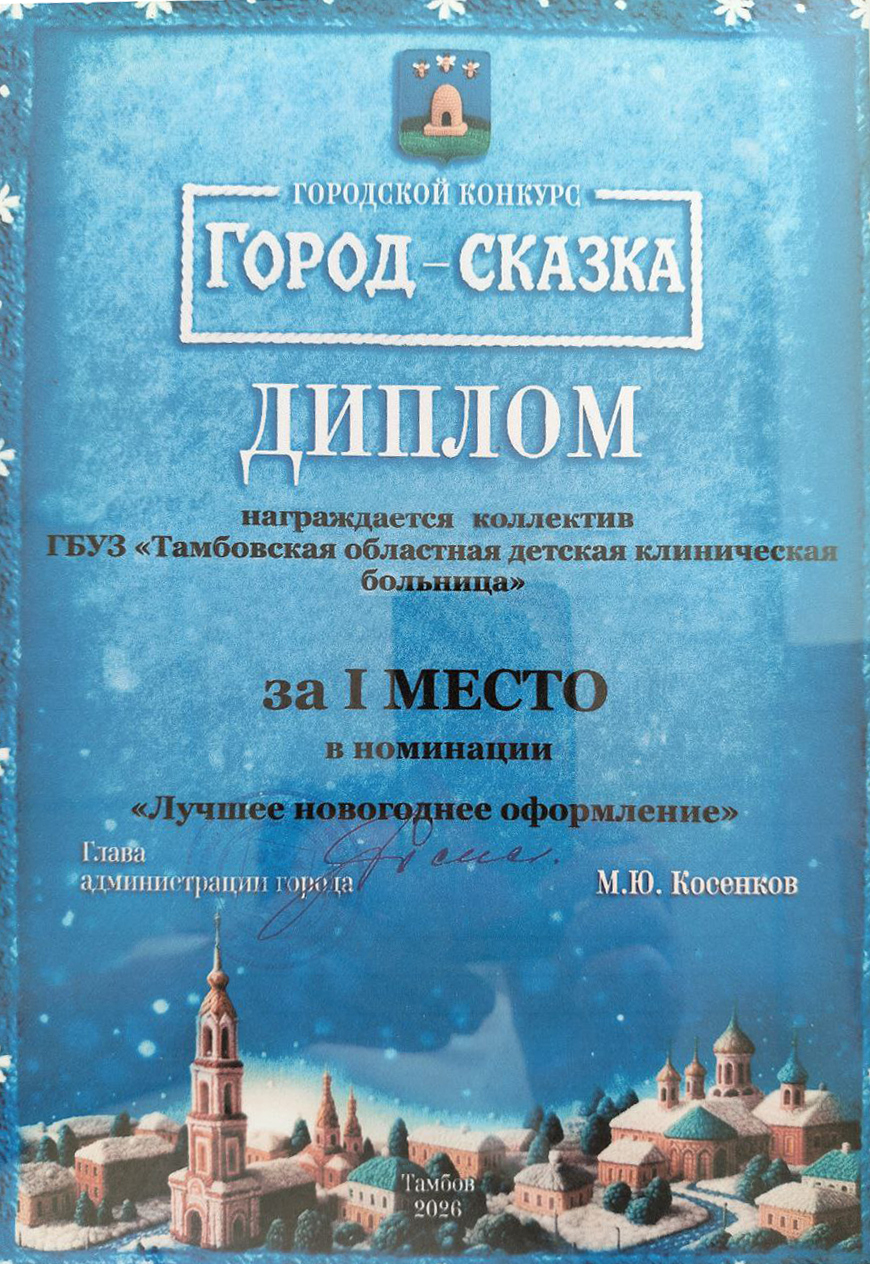 Коллектив ТОДКБ одержал победу в городском конкурсе «Город - сказка» в номинации «Лучшее новогоднее оформление», проходившем с 5 декабря 2025 года по 31 января 2026 года. В течение восьми недель за победу в пяти номинациях боролись более 360 участников, 60 из которых получили награды.