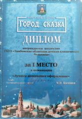 Эта победа вполне закономерна, ведь в областной детской больнице большинство пациентов ещё верят в чудеса и, конечно, в деда Мороза. Сотрудники приложили все усилия для того, чтобы, атмосфера праздника и сказки отвлекала малышей от болезни. Самыми главными дизайнерами и декораторами стали любовь и доброта, ведь в каждом отделении больницы новогодние уголки оформлялись исключительно руками медицинских работников, которые от всего сердца хотели подарить юным пациентам и их мамам настоящий праздник и волшебство.